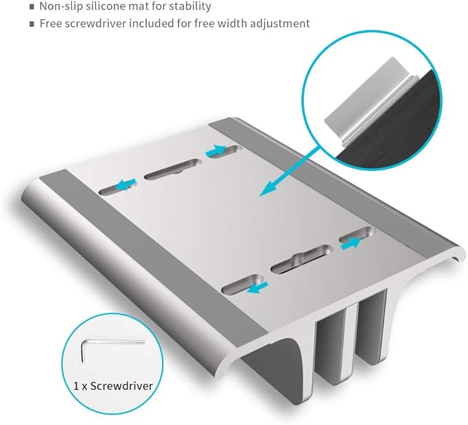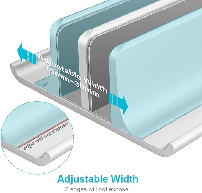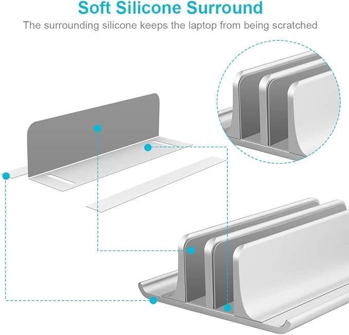 - Protective and Stable: Anodized aluminum is scratch-resistant and durable. Non-toxic silicon inside the slot protects your MacBook from being scratched and secures it in stable position.Non-slip base with silicone pad prevents your vertical laptop stand from moving around.
