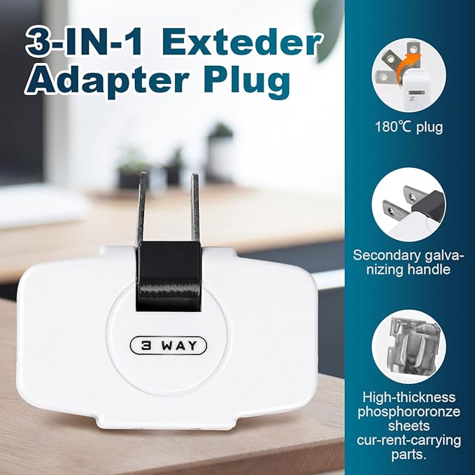 - Easy Access: Compact 3-way design allows you to use large adapter-shaped plugs, 180-degree rotating type A plug can be bent into different angles without obstructing other outlets;