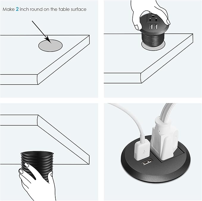 - Creative Recessed Desktop Power Grommet Design Space Saving:This unique grommet power outlet get rid of hefty adapters and messy plugs. Ideal for charging multiple devices at the home/office/school.
