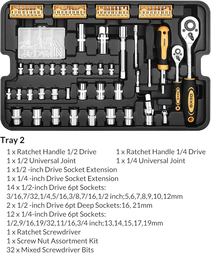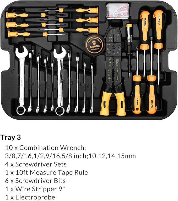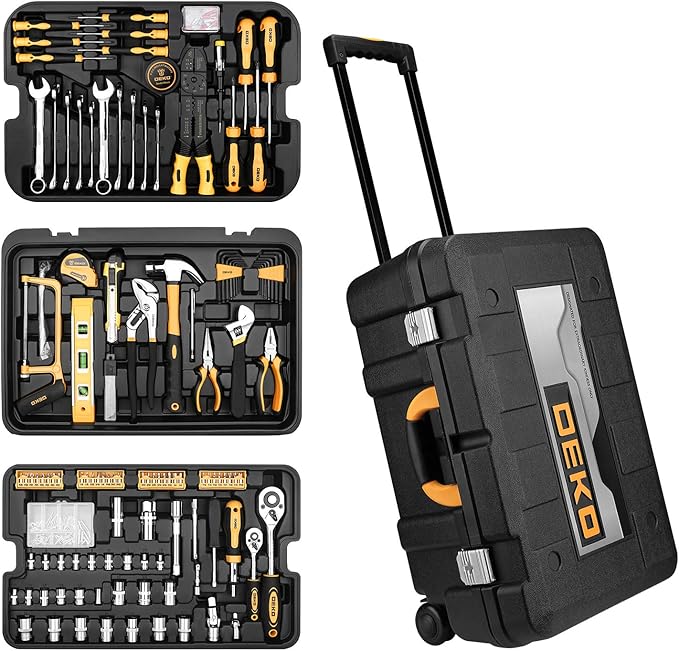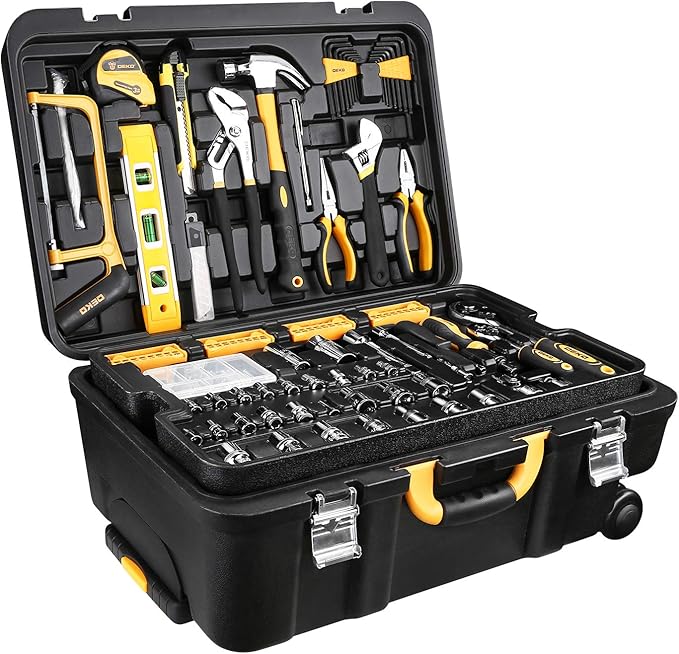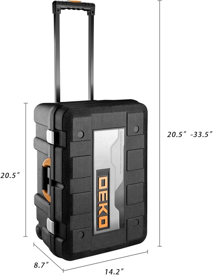 DEKOPRO 258 Piece Tool Kit with Rolling Tool Box Socket Wrench Hand Tool Set Mechanic Case Trolley Portable
