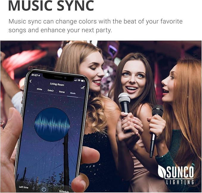 - ✅ CHANGE COLORS – Change colors via rainbow color wheel or classic CCT (2700K-5000K) color temperatures. Bump up the beat and atmosphere with MUSIC SYNC which changes color to the beat of your favorite song.