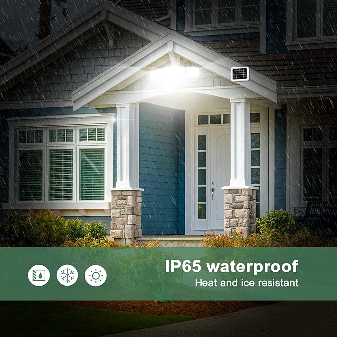 - IP65 Waterproof Outdoor Solar Lights: IP65 waterproof rating ensures the outdoor flood light can withstand rain, sleet and snow, a great outdoor flood light for your house