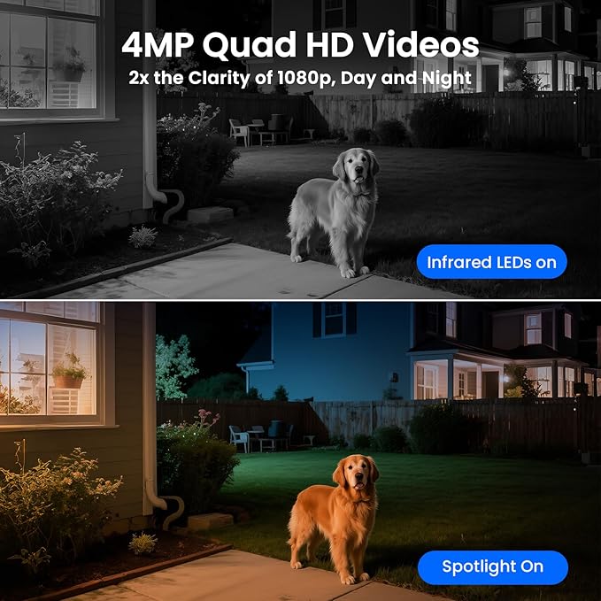 - 【PIR Thermal True Detection】with PIR thermal sensors and humanoid detection, the cameras avoid most false alerts and send real-time App/ email alerts to your phone when people, animals or vehicles detected, helping you to take care of your properties and loved ones with ease.