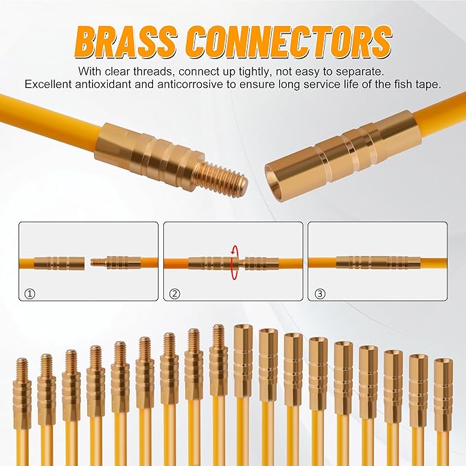 - HIGH VISIBILITY: Electrical fish tape rods are colored with a bright yellow to be able to locate and differentiate the rods from wires easily. Also it is wear-resistant, corrosion-resistant and anti-oxidation, longer lifespan