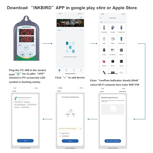 - WIFI smart controller: Supports both IOS and Android; WIFI connection supports 2.4 GHz Wi-Fi with INKBIRD APP to control the temperature remotely