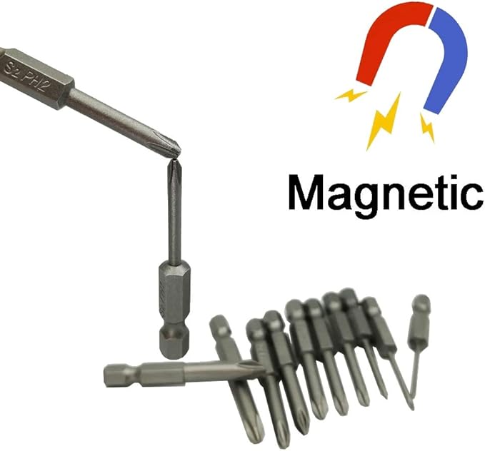 - ★Top Quality Material: S2 steel alloy magnetizable cross phillips head(New Bits with Weak Magnetic). After Magnetized with a magnet it would with a strong magnetic, can suck the screws easily when used it.