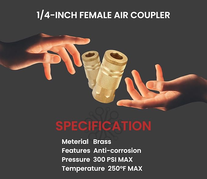 - Wide Application: 1/4 inch brass female industrial couplers are ideal for professional jobsites, in automotive shops or at home in the garage for air hose, air compressor, air tools, air nailer, air blow gun, pressure washer