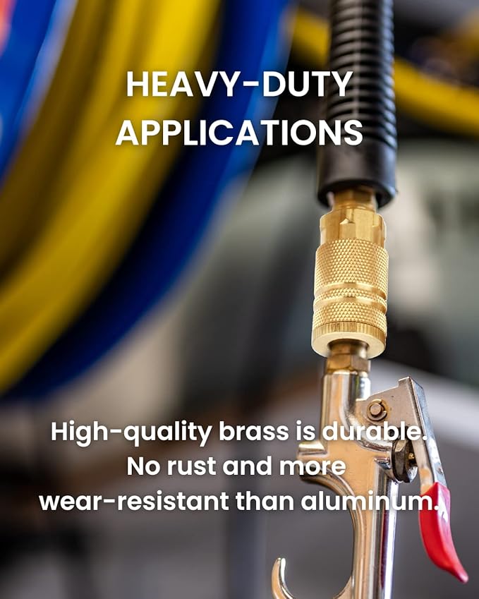- Premium Materials: Quick connector air couplers are made of high quality brass, they are high strength, high hardness and durable for long term use, no rust, more wear resistant than aluminum