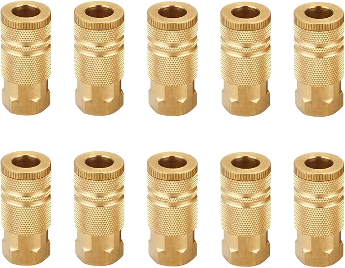 1/4-Inch Brass Female Industrial Coupler, 10 Pack 1/4 Inch Air Hose Fittings NPT Female Quick Connector Air Coupler for Professional Jobsites and Automotive Shops