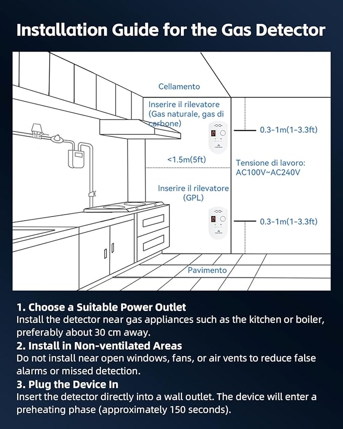 - Meets Everyday Safety Needs – Ideal for use in kitchens, living rooms, bedrooms, RVs, basements, and more, this gas detector is an essential tool to help keep your home and family safety