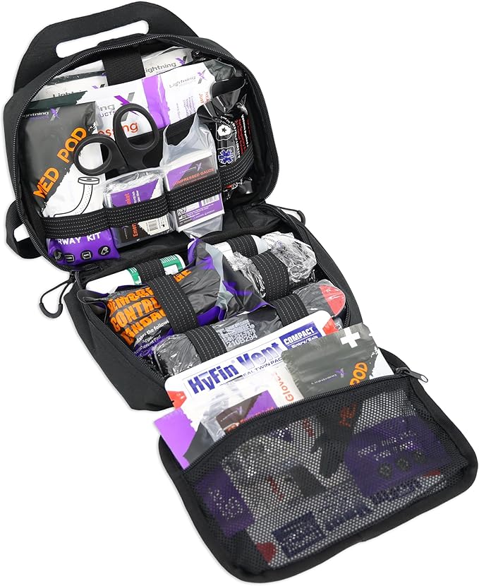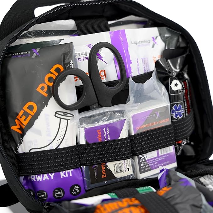 Lightning X Rip-Away Officer's Patrol Tactical Gunshot & Trauma IFAK Kit w/Headrest Mount - Black