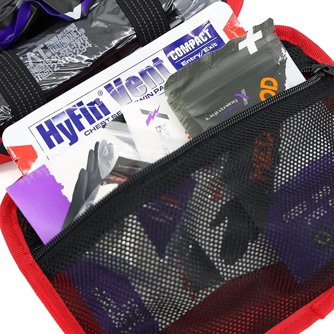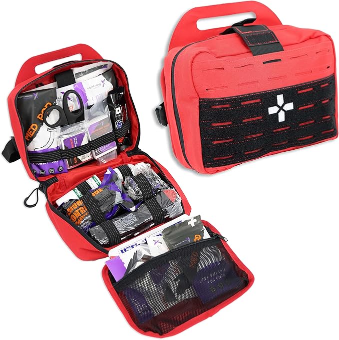 Lightning X Rip-Away Officer's Patrol Tactical Gunshot & Trauma IFAK Kit w/Headrest Mount - RED