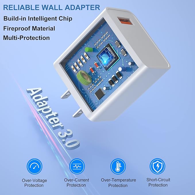 - 【Safe & Reliable Wall Adapter】: Build-in intelligent chip and circuit system brings better power and performance, such as protect against extreme working condition (like over-charging/over-current/over-heating), automatic recognize different devices to charge with effect, and automatic stop charging when power is full. In addition, durable PC fireproof shell is another excellent safeguard that protect your device maximally.