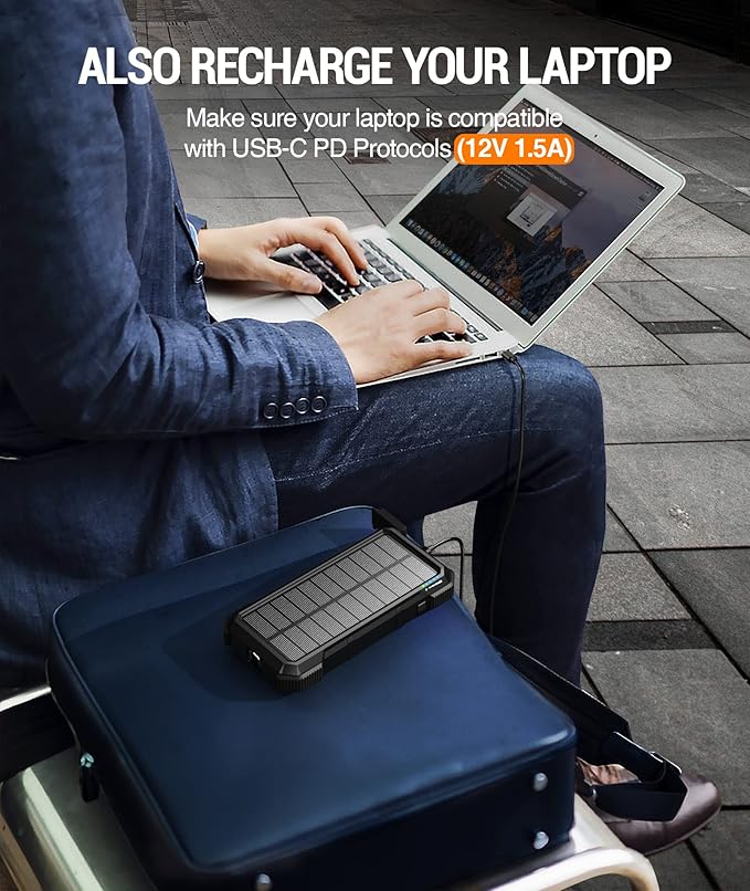 - Wireless Charging for Multiple Devices: The solar power bank has advanced 10W/7.5W/5W fast wireless tech, which can auto-pair your devices with the optimal power, to offer you worry-free fast wireless charging experiences. The cell phone solar battery charger is equipped with 4 outputs (2 USB-A,1 bidirectional USB-C, wireless charging), supporting charging 4 devices simultaneously, flawlessly compatible with nearly all mobile devices.