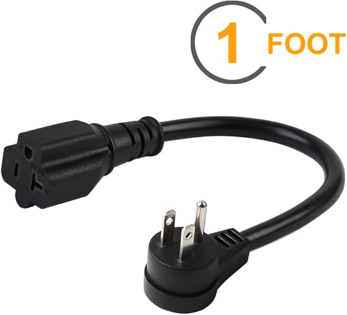 - (1xPCS) UL Listed Down Angle Nema 5-15P to 5-20R Power Adapter Cable, USA 3Pin Male to Female AC Adapter