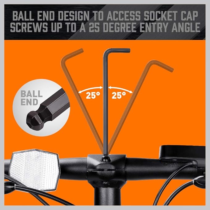 - Ball end design to access socket cap screws up to a 25 degree entry angle, Allen Wrench Set ( SAE / Metric / Ball) could meet more your needs