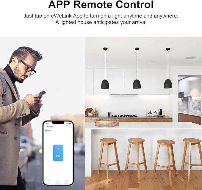 - Smart Remote Control Switch - The smart wall switch can be controlled through Ewelink App (Compatible with Android & iOS), allowing you to manage your home devices from anywhere. (Note: The smart switches for lights doesn't support Home Kit.)