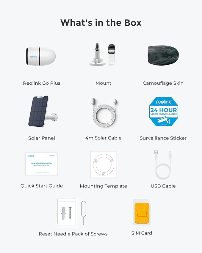 - STAY CONNECTED WITH 4G LTE: The included SIM card can automatically connect to the carrier with the strongest signal. It supports three major carriers in the US: AT&T, Verizon, and T-Mobile. Users can activate, refill the SIM card and track data usage via Reolink App.