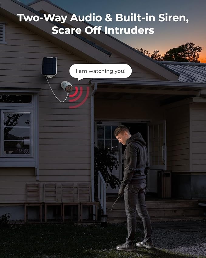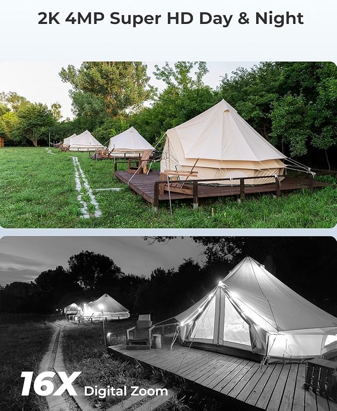 - 2K SUPER HD & 33FT NIGHT VISION: With 4MP resolution, this wireless security camera captures sharp, clear footage for more visual details. Its infrared LEDs provide superior image quality for your nighttime recordings, supporting up to 10 meters (33ft) night vision.