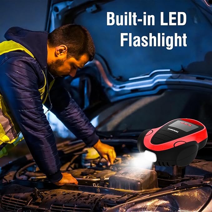 - DIGITAL DISPLAY & LED Lighting: Bright backlight LCD display makes for convenient use at night. As well as being bright enough to see under strong sunlight, The air compressor gauge can display the pressure in PSI, BAR & KG/CM². TEROMAS air pump is equipped with bright and long-lasting LED lights, easy to use even in the dark.
