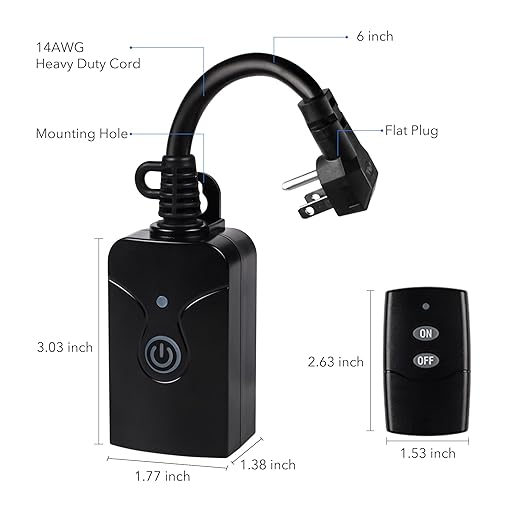 - Weatherproof: our outdoor remote control outlet is built to stand the test of rain and harsh weathers. Please place the plug at least 2 feet off the ground with the plug pointing straight down to avoid water damage.