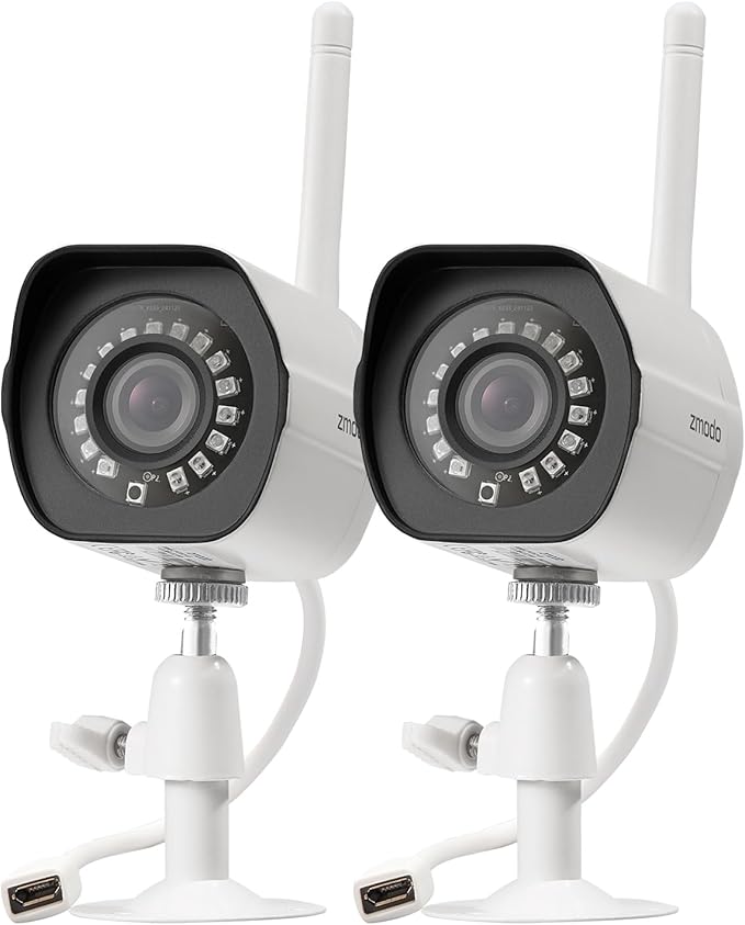 Zmodo Outdoor Wireless Security Camera System, 2 Pack 1080p Full HD Smart Home Indoor Outdoor WiFi IP Cameras with Night Vision, Plug-In, Compatible with Alexa