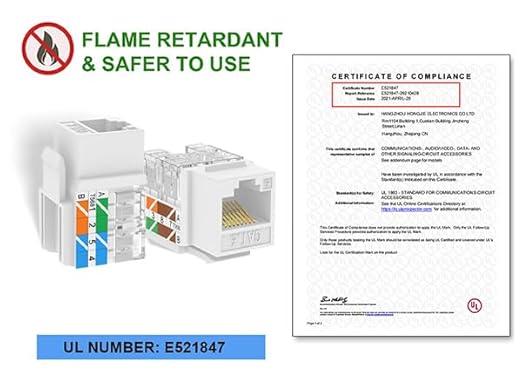 - Package Content: 50 x Cat6 90-degree keystone jacks UL Listed (E521847) + 1 x keystone punch down stand tool + 1 x mini wire stripper cutter. With worry-free 18-month warranty, just use it without concern.