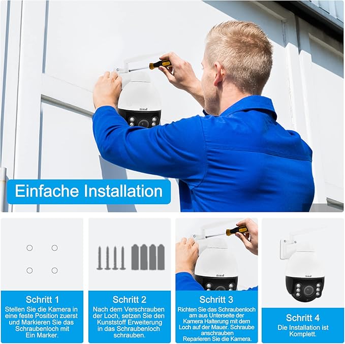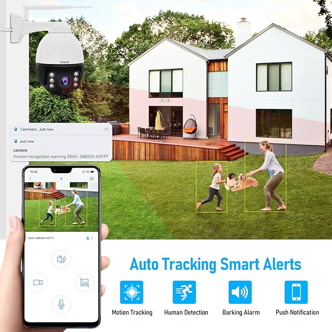 - 【Remote Access & Smart Motion Detection】You can control and view the PTZ camera anytime, anywhere. You can choose the detection area and set the alarm sensitivity. When motion is detected, the PTZ security camera will immediately send notification to your mobile phone and video to your email. Humanoid detection technology intelligently distinguishes between humans and animals, greatly reducing false alarms.