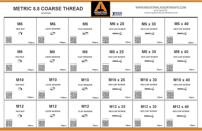 Titan Industrial Supply-1275 Piece Metric 8.8 Coarse Thread Metal Drawer Assortment
