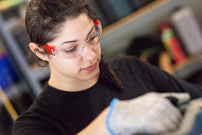 - SAFE HANDLER brand by Bison Life, Case of 12 Boxes, 144 Pairs Total, Clear Lens Color Temple, Red