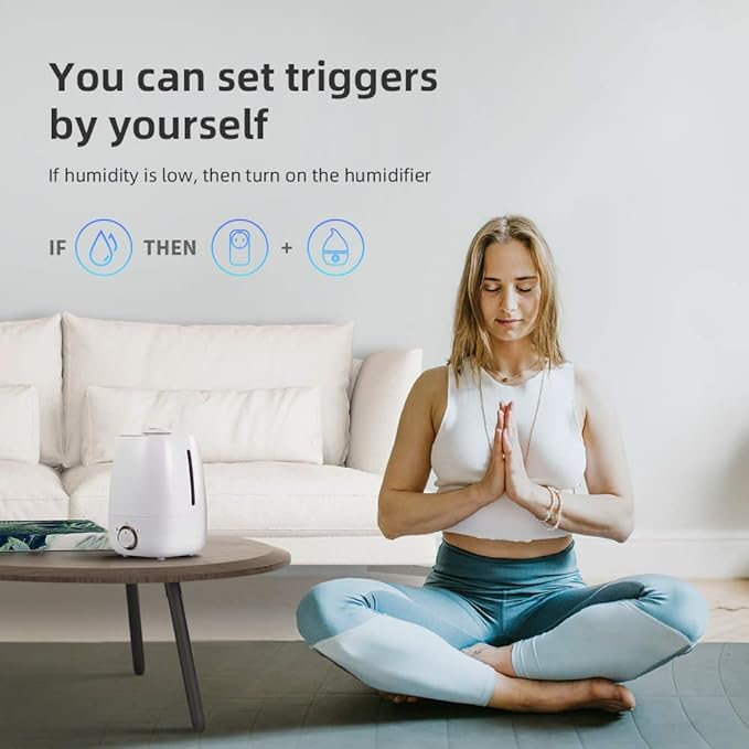 - FEATURES - It supports to display temperature and humidity number in the APP. It can realize some linkage functions with remote like triggering to control AC automatically when the temperature rises.