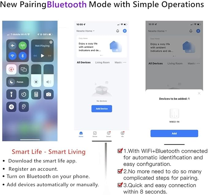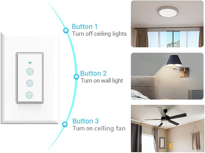 - Easy to Install: the smart triple light switch seamlessly replaces your old wall light switch. Control your lights or fans from Nexete Smart Light Switch on the wall. Only 3 easy steps to install and connect it with the "Smart Life "or "Tuya smart" App.