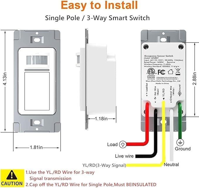 - 【Wi-Fi Motion Sensor Light Switch】Automatically turn on/off lights based on room PIR occupancy when detecting infrared motion(Note:The sensor keeps staying off if the environment is bright).The adjustable time delay from 15sec--60mins optional.Work with Tuya Smart & Smart Life APP. Manage your device with voice commands via Amazon Alexa or Google Assistant.