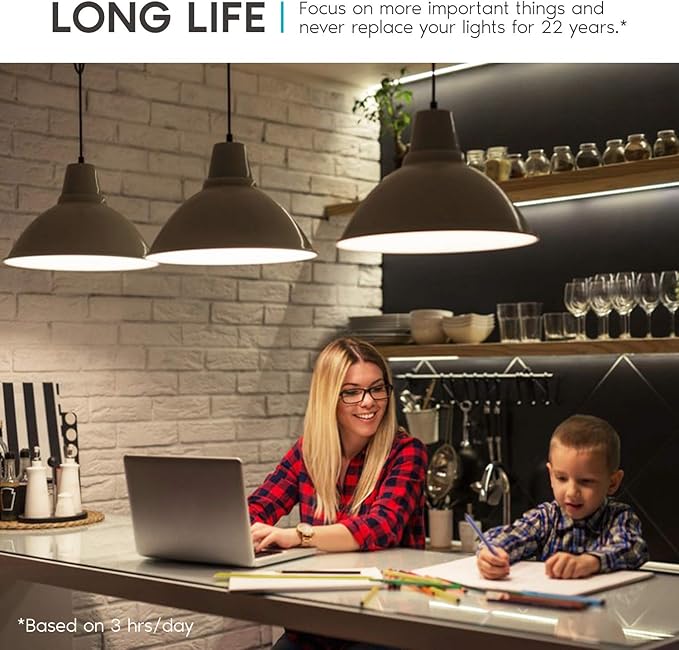 - Continuous Light - Built with an astounding 25,000 hours of lifetime which means no replacement will be needed for the next 22 years. Each e26 led bulb lasts 10x longer than traditional 60W incandescent bulbs.