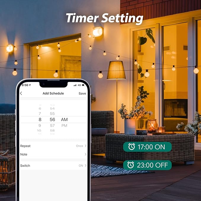 - Schedule and Timer Setting: Schedule 3 smart outlets automatically to turn on and off most heavy duty electronics, you could set sunrise and sunset schedule in advance and avoid forget to turn off the outdoor plug — especially convenient during holidays, help to become more environmental friendly and decrease electrical waste.