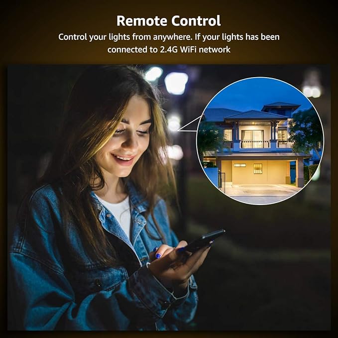 - Remote Control from Anywhere: With the "Smart Life" App on your phone, you can easily turn on/off, set brightness, create timers and so much more, as long as the lights are connected to Wi-Fi.
