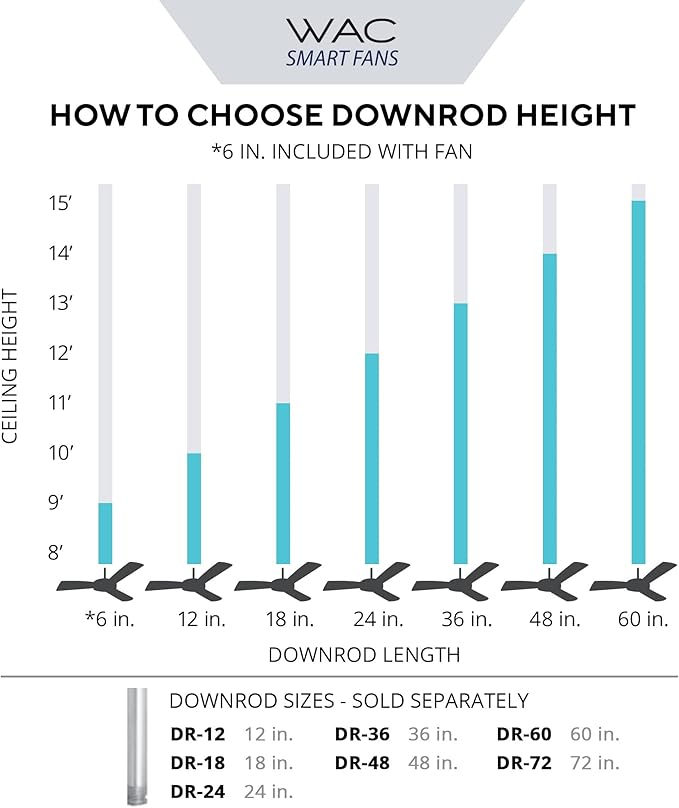 - STANDARDS: UL & cUL Wet Location Listed for indoor or outdoor applications. Includes a 6in Downrod and can be mounted on slope ceilings. Additional downrod lengths sold separately (SKU # DR-FINISH). WAC warranties all ceiling fans for 5-years.
