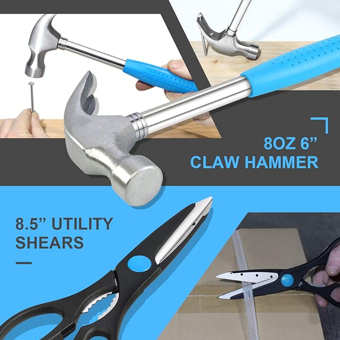 DNA MOTORING 39-Piece Household Tool Set General Repair Small Hand Tool Kit Storage Case for Home Garage Office College Dormitory Use, Blue, TOOLS-00008