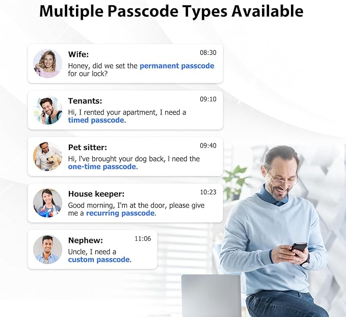 - 🔒【Rental Hosts & Homeowners】You can create virtual keys to share with people you trust-set them as permanent keys or to a schedule,Lock/unlock,grant access to others and see who comes and goes from anywhere using smart door lock is a great solution for short-term rental hosts,rental property management,and self-housing resident.