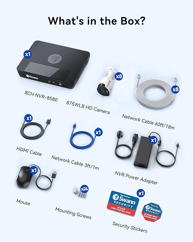 - Swann Master Security Camera System: Upgrade your home security with the Swann 4K Master Security Camera kits. This comprehensive package includes a 8-channel NVR with a 2TB HDD, expandable to support up to 6TB of storage. With Swann, rest assured that your property is under constant surveillance.