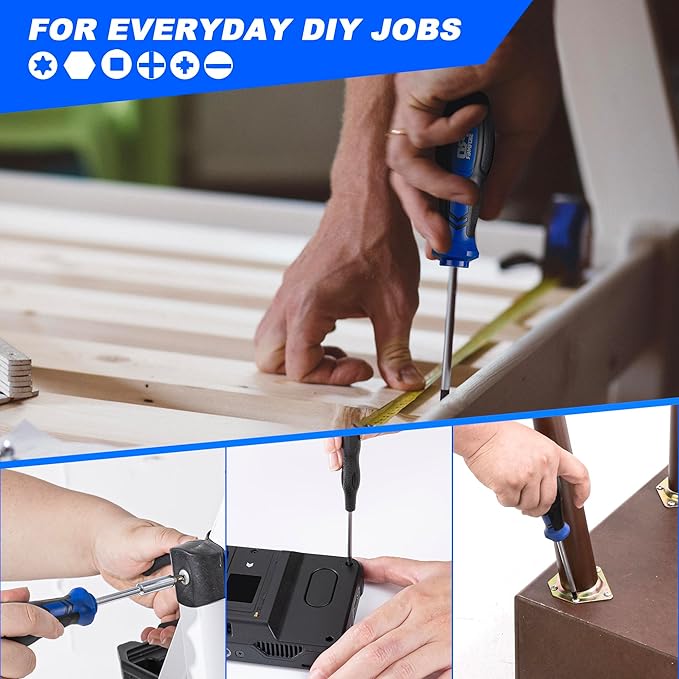 - [Premium Quality Material] - Screwdriver shank is made of chromium vanadium steel with chromium plating treatment, durable and corrosion resistance. Handle is made of TPR and PP material, non-slip design and comfortable for grip.