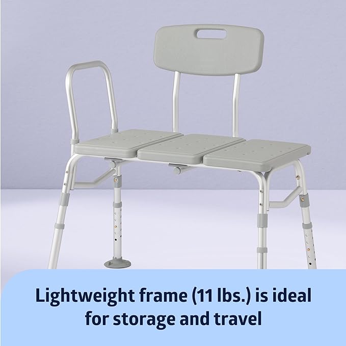 Medline Transfer Bench for Bathtubs and Showers, Adjustable Shower Bench and Bath Seat For Seniors and adults, Slip-resistant Feet, Heavy-Duty 400 lb. Weight Capacity, Tool-Free Assembly