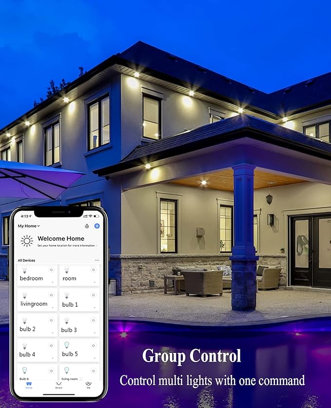 - Group Control: The alexa lightbulbs can be controlled individually, or you can set your lights in one group and turn them on/off, change the color or the brightness at the same time