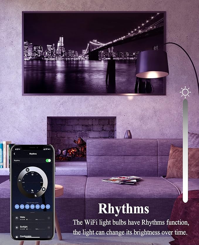 - Rhythms & Wake Up: Our small light bulb have Rhythms function, the light can change its brightness over time. You can also set a Wake Up Plan and Sleep Plan, let the lights turn on or off at the time you set