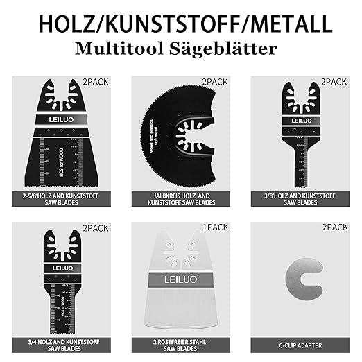 LEILUO 31Pcs Multitool Blade Kits for Wood Nails Drywall Cutting Oscillating Saw Blades Universal Oscillating Tool Blades with Storage Bag Compatible with DeWalt Makita Dremel and More