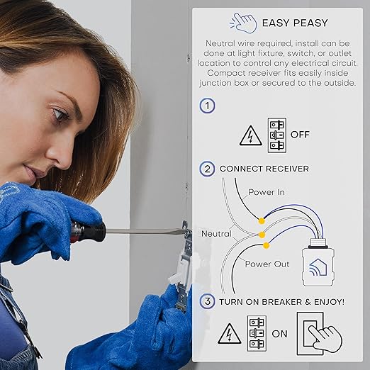 - ✔️ Simple DIY Installation Installs at the light fixture using standard 120V wiring. No hub or Wi-Fi required. Just pair with your switch and mount in minutes.