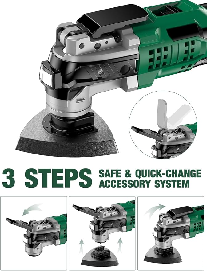 - ใ๐๐๐๐ & ๐๐ฎ๐ข๐๐ค ๐๐ญ๐ญ๐๐๐ก๐ฆ๐๐ง๐ญ ๐๐ก๐๐ง๐ ๐ข๐ง๐ ใSafety is the MOST 1st factor in the job. KIMO oscillating tool provides convenienct quick-change system for blade-changing at work and a thoughtful locking bracket under the clamping lever which makes sure the safety for you. KIMO not only makes the tool easier for use and increase the effieiency but also makes sure the safety is always the 1st place for tool using.
