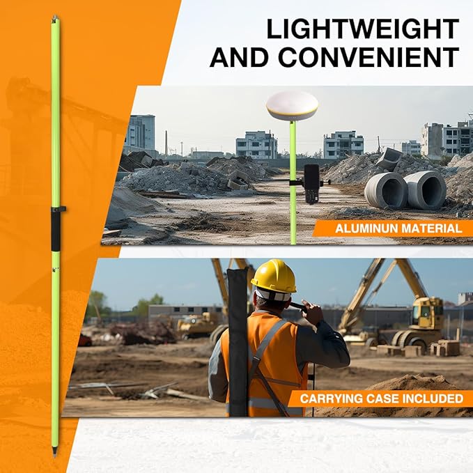 Aluminum GPS Rover Rod – 6.5FT/2M 2-Sections Design GPS Pole for Land Surveying & Engineering – RTK GPS/GNSS Accessory – Includes Level Vial & Carrying Bags (GLS220)
