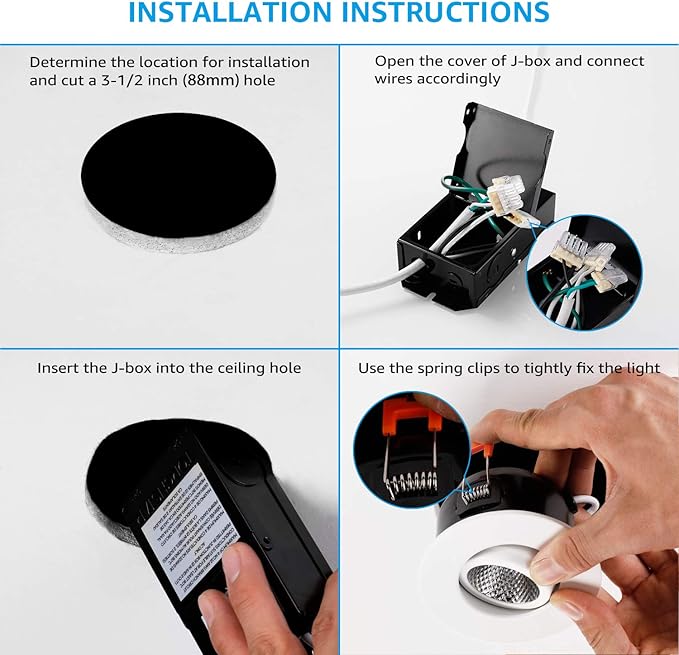 - Rotatable Spotlight: Featuring a vertical angle adjustment of 30 degrees and a horizontal rotation of 355 degrees, this 3 inch LED recessed light can illuminate artwork or focal points on walls with precision