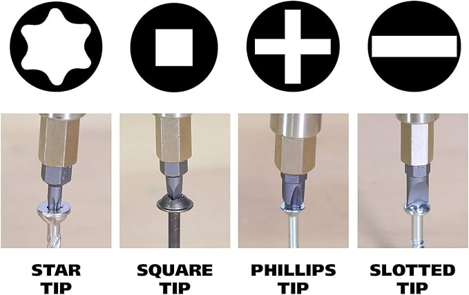 - Head Style : Slotted (3/16", 1/4"), Phillips (#1, #2), Square (#1, #2), Torx (T10, T15)